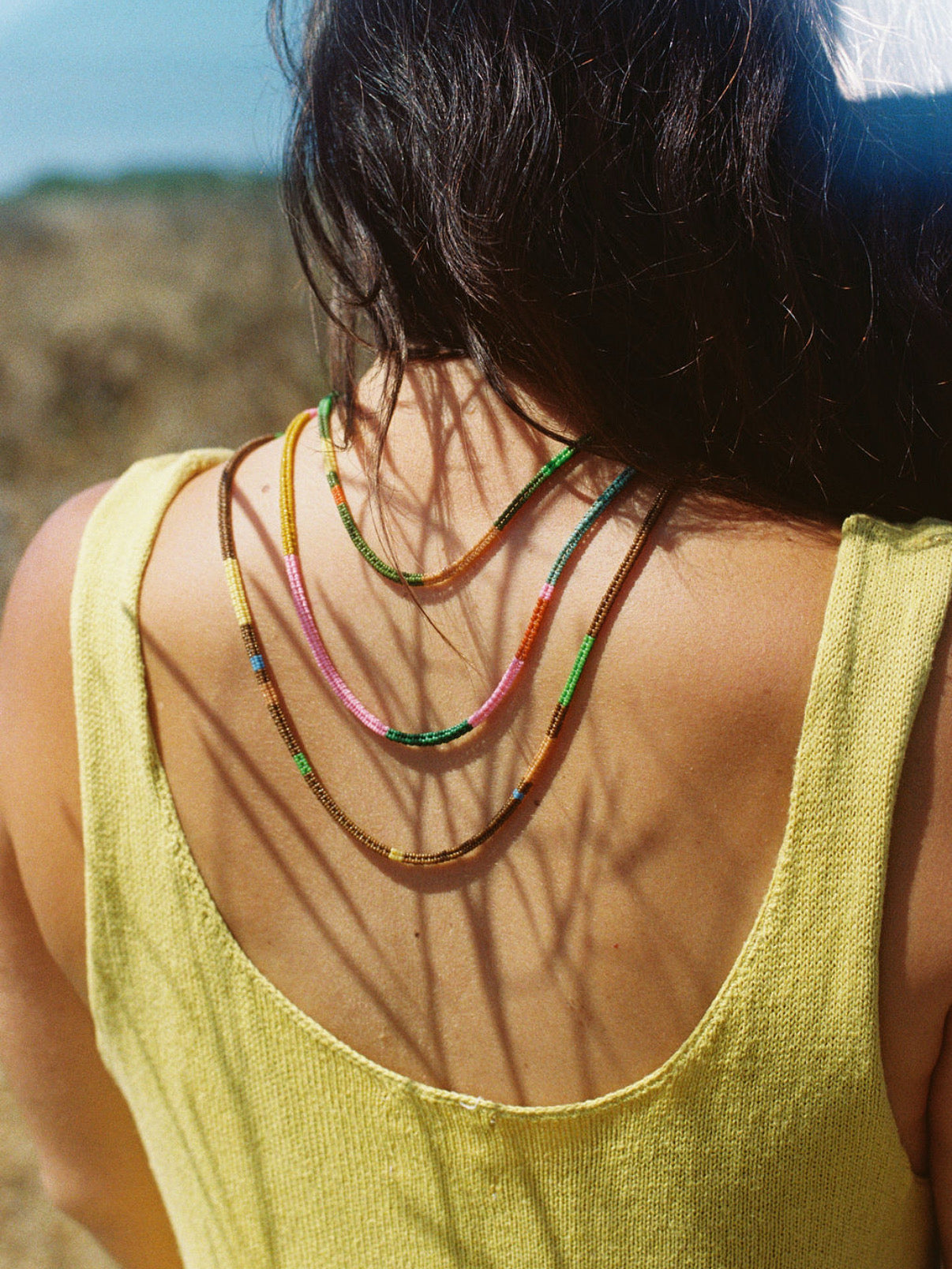 Beaded Necklace- Stripes with Pearls and Turquoise
