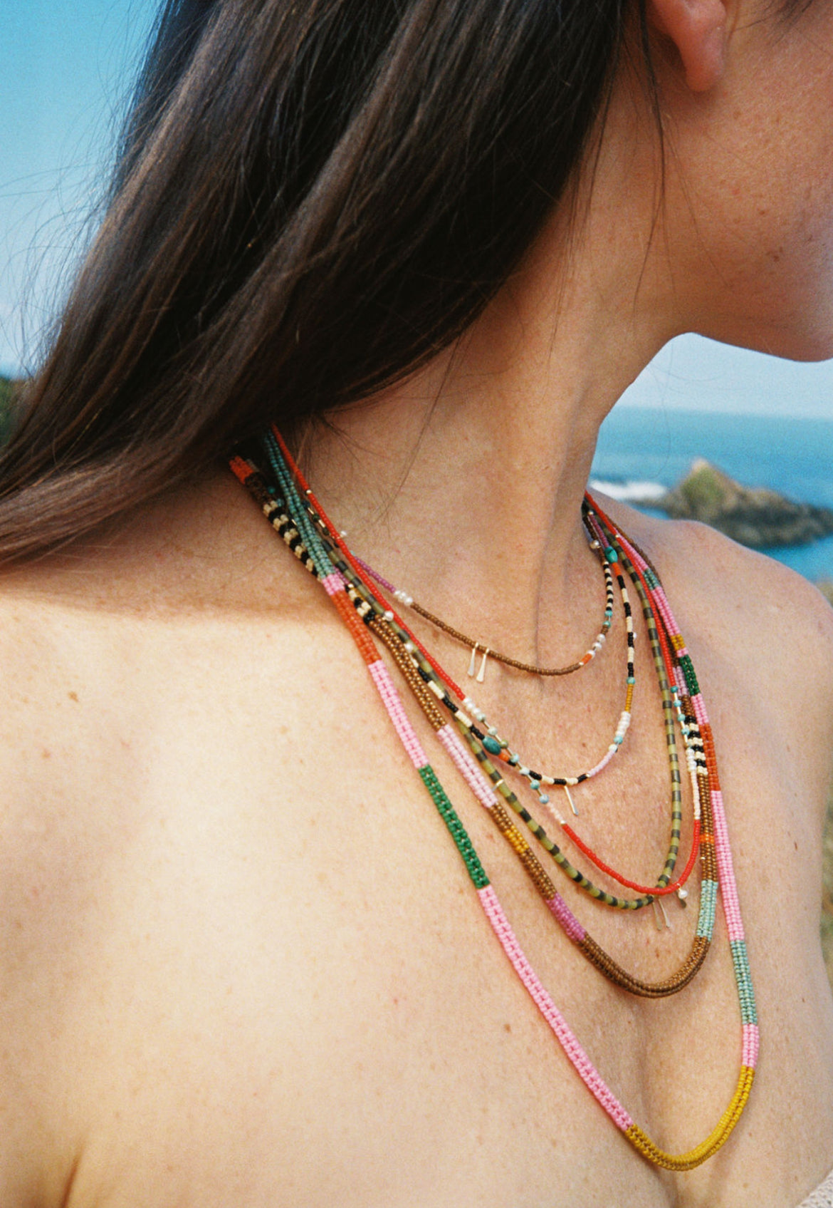 Beaded Necklace- Red Clay with Freshwater Pearls