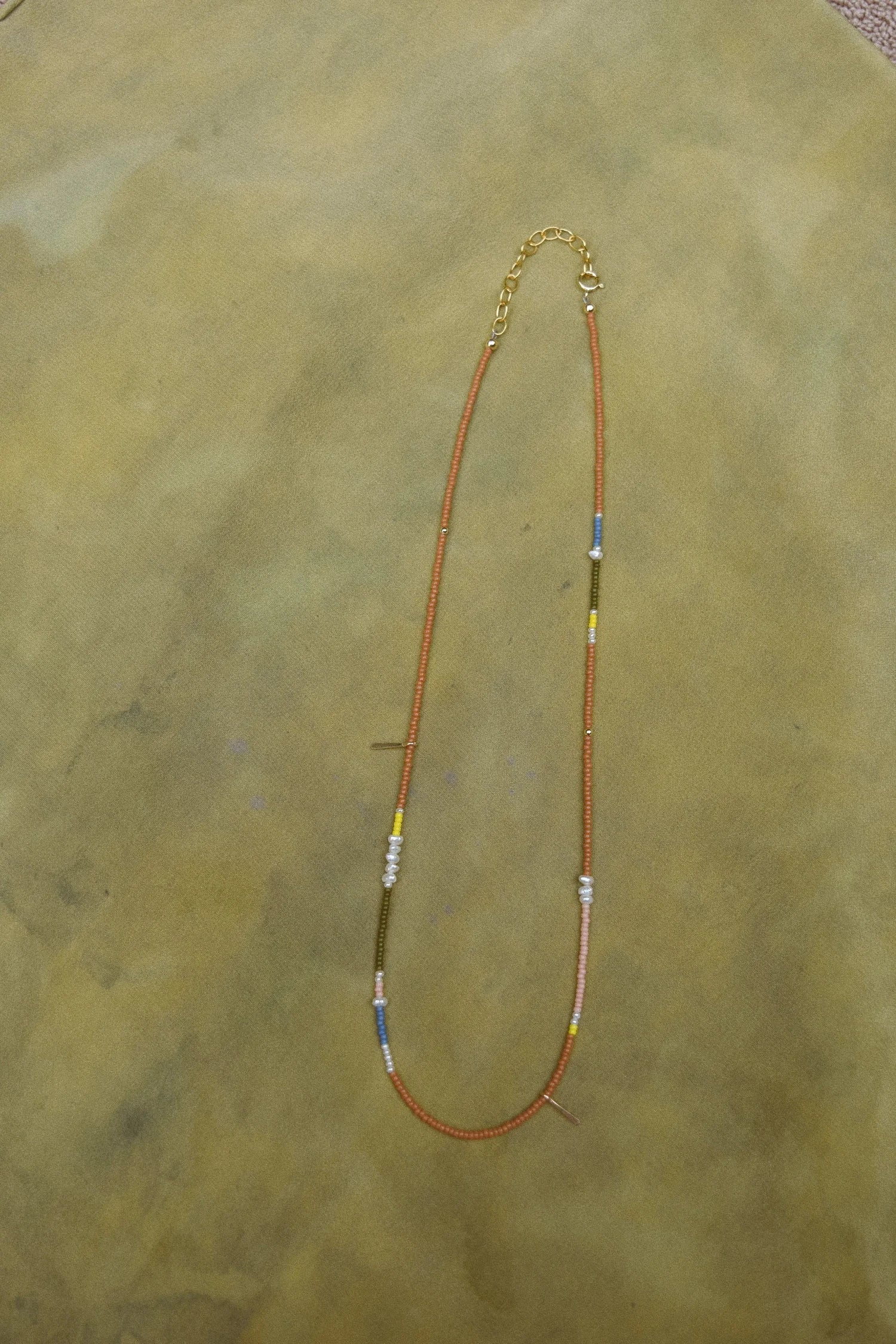 Beaded Necklace- Peach with Freshwater Pearls